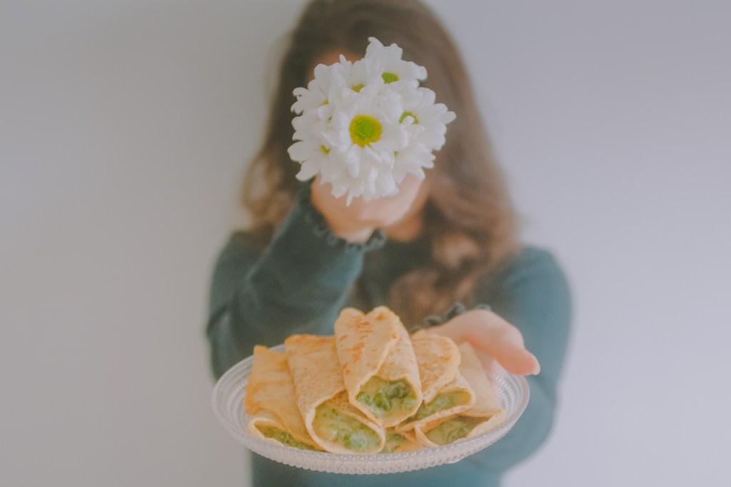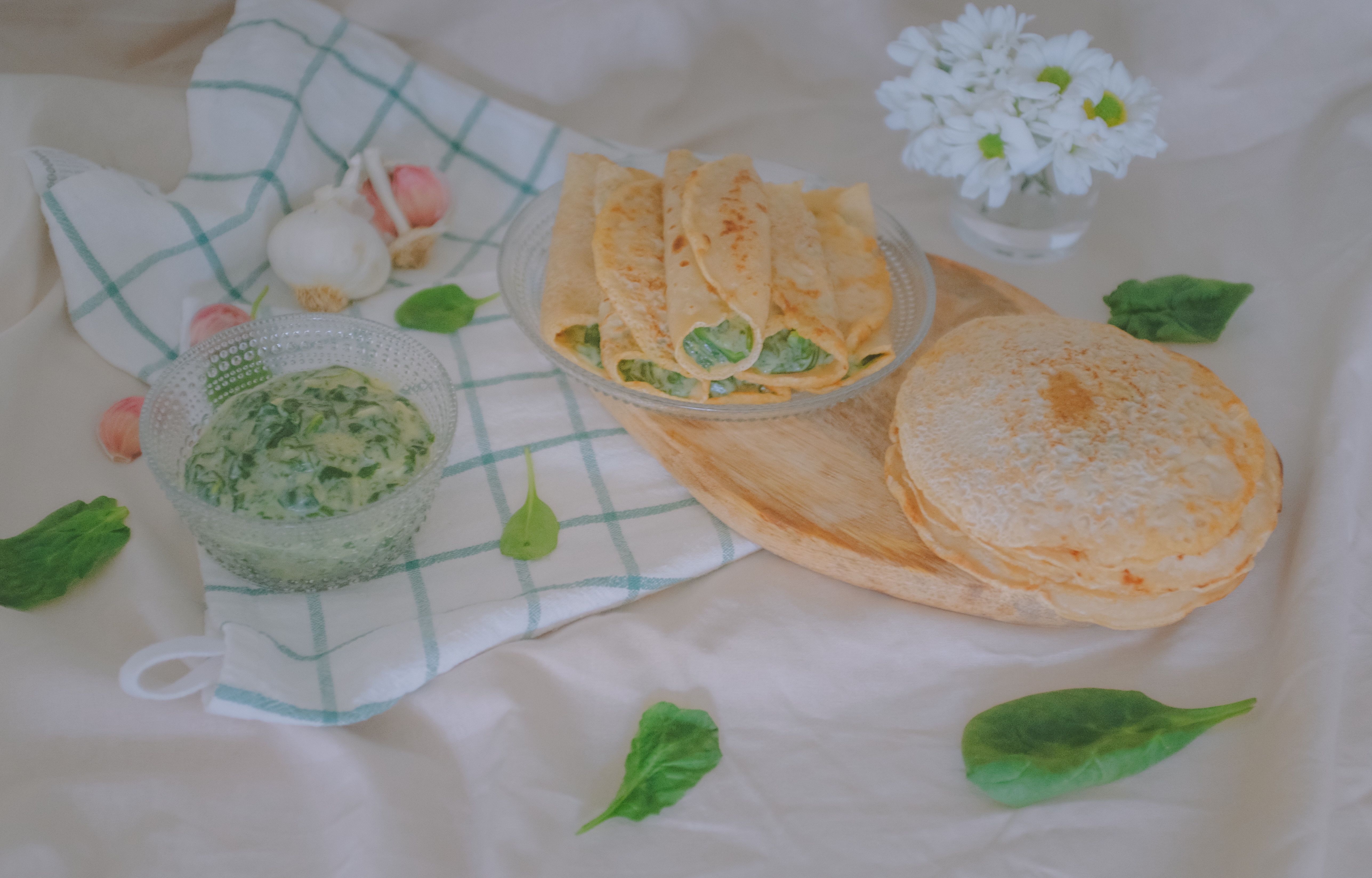 German inspired savoury pancakes with cream spinach. Very easy recipe!