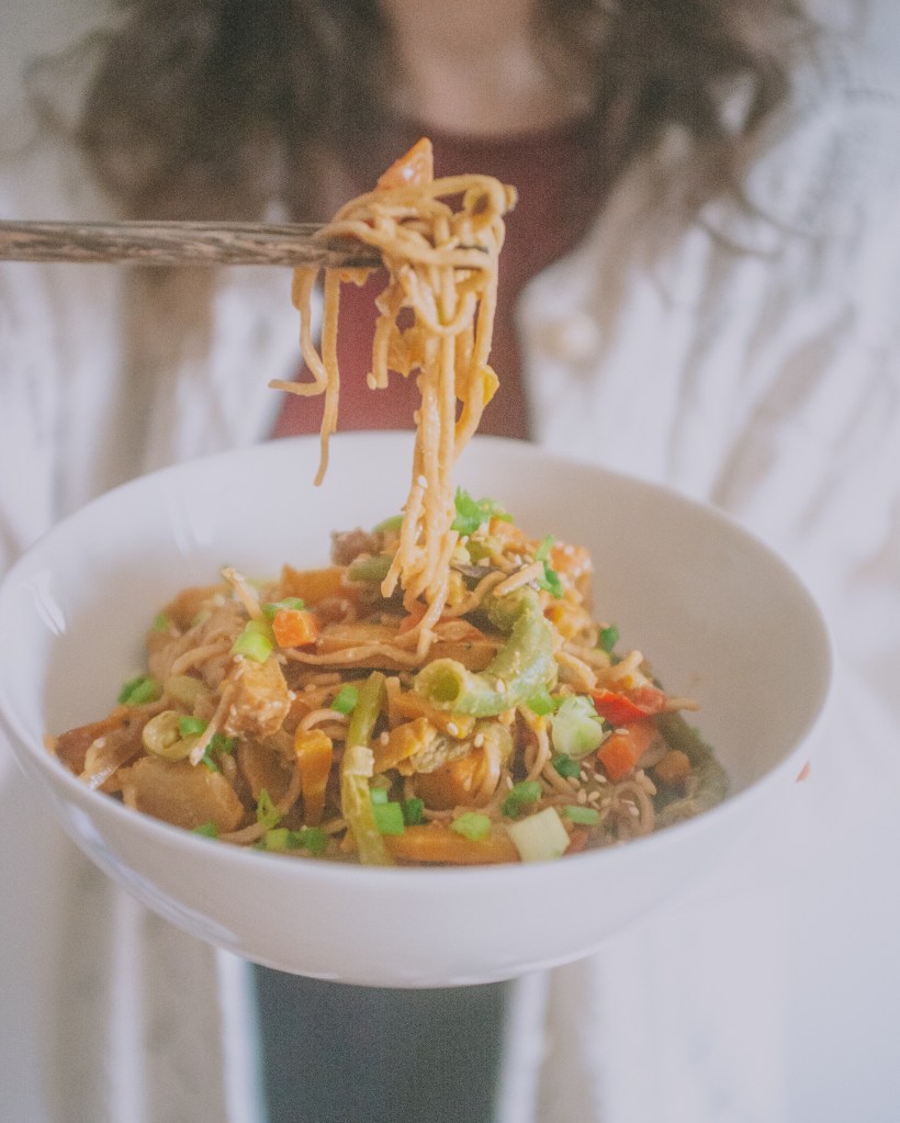 - Bake the tofu in the oven on 200C° for 10-15min, add to the mix once they are golden brown